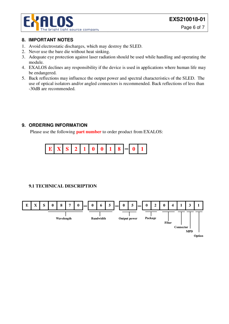 型番: メーカー:EXALOS AG 商品コード:L001010