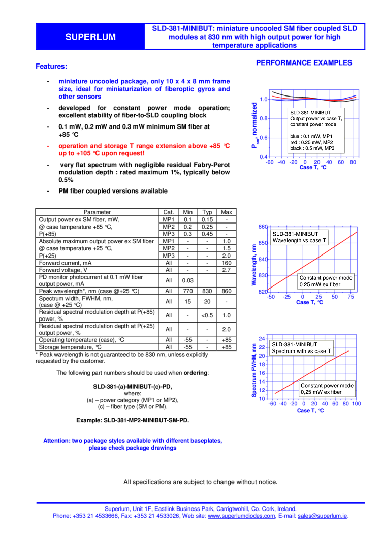 型番: メーカー:Superlum Diodes Ltd. 商品コード:L001026