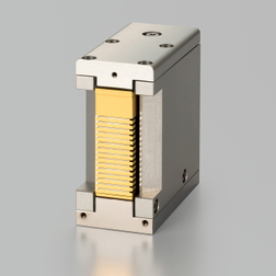 発光点(エミッタ)をリニアアレイ状に配置したレーザダイオードバー(LDバー)と冷却機構等を一体化して、高性能・高光出力・高信頼性を実現したLDモジュールです。LDバーを積層(スタック化)することで、キロワットクラスへの高出力化が可能となります。冷却には当社独自の噴流冷却方式を採用しています。
