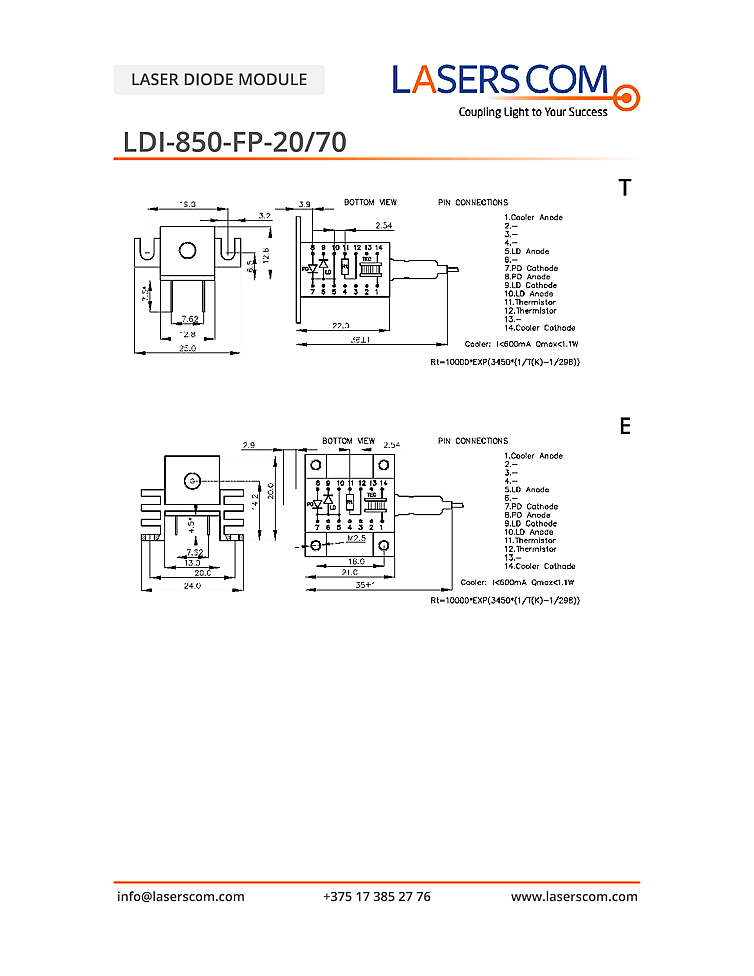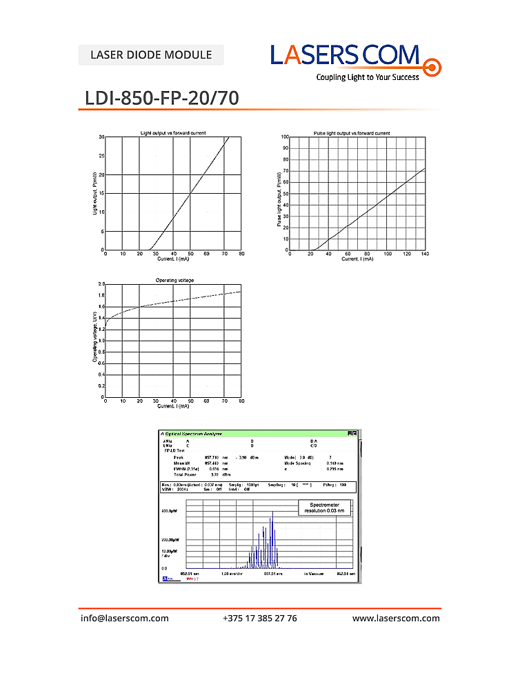 波長: 850nm-850nm 出力: 20mW-20mW パッケージ: TO-Can / DIL テクノロジー: Fabry-Perot