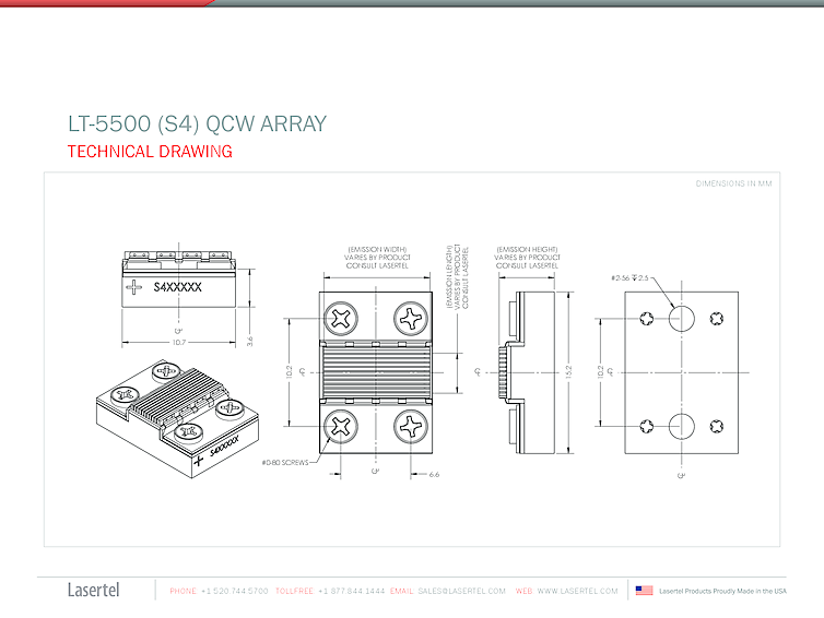 波長: 808nm-976nm 出力: 300W-300W パッケージ: QCW, array, S4 テクノロジー: high power array
