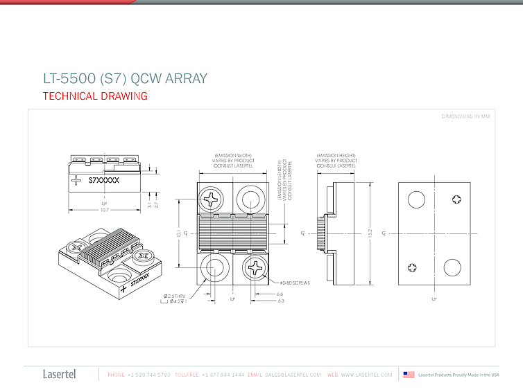 808nm, 885nm, 940nm, 976nm S7 array from Lasertel offers 300W laser power. This high powered laser diode array is a QCW array package which is engineered and manufactured to perform reliably and efficiently in the most demanding environments.