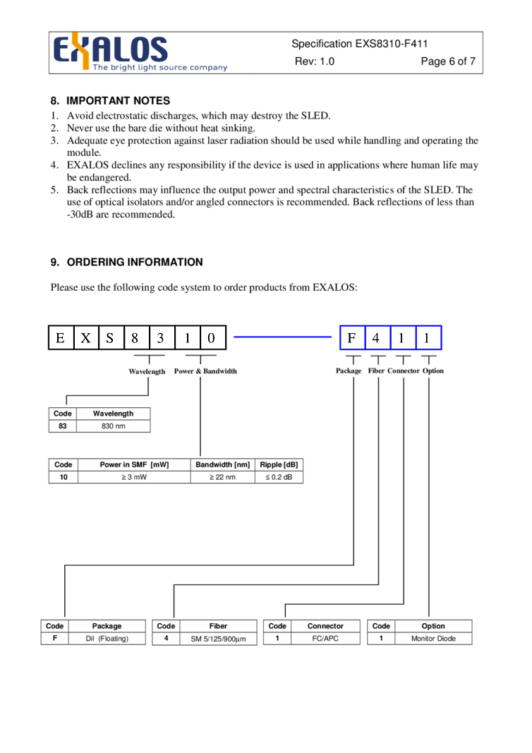 型番: メーカー:EXALOS AG 商品コード:L001227