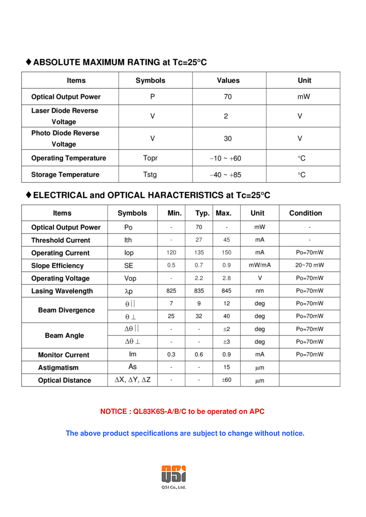 波長: 830nm-830nm 出力: 70mW-70mW パッケージ: TO-can テクノロジー: n/a