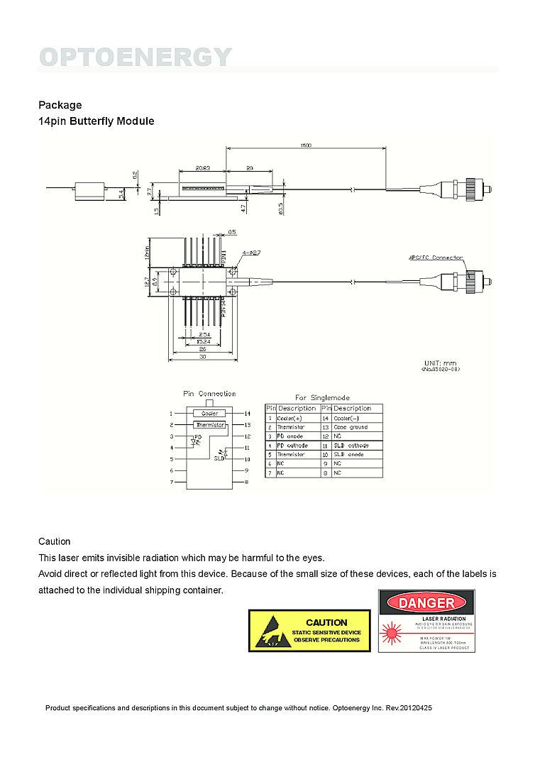 波長: 1040nm-1040nm 出力: 150mW-150mW パッケージ: butterfly テクノロジー: SLED