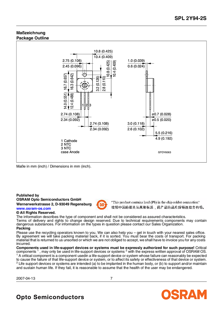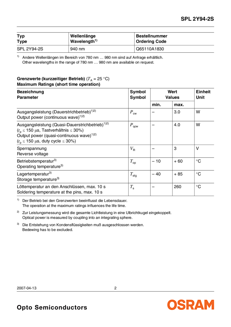 型番: メーカー:OSRAM GmbH 商品コード:L001445