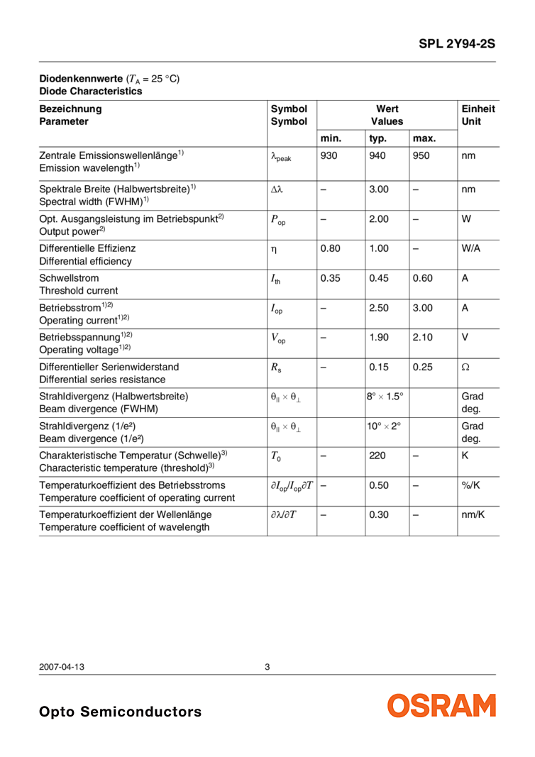 • Efficient 940nm laser radiation source for cw and pulsed operation