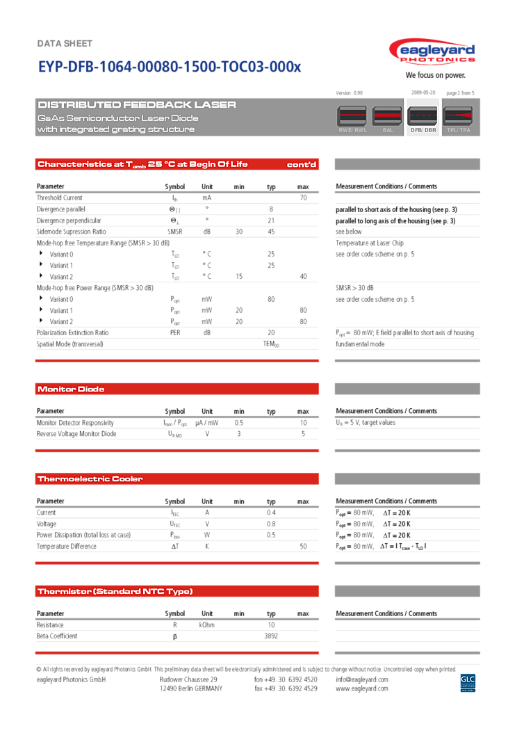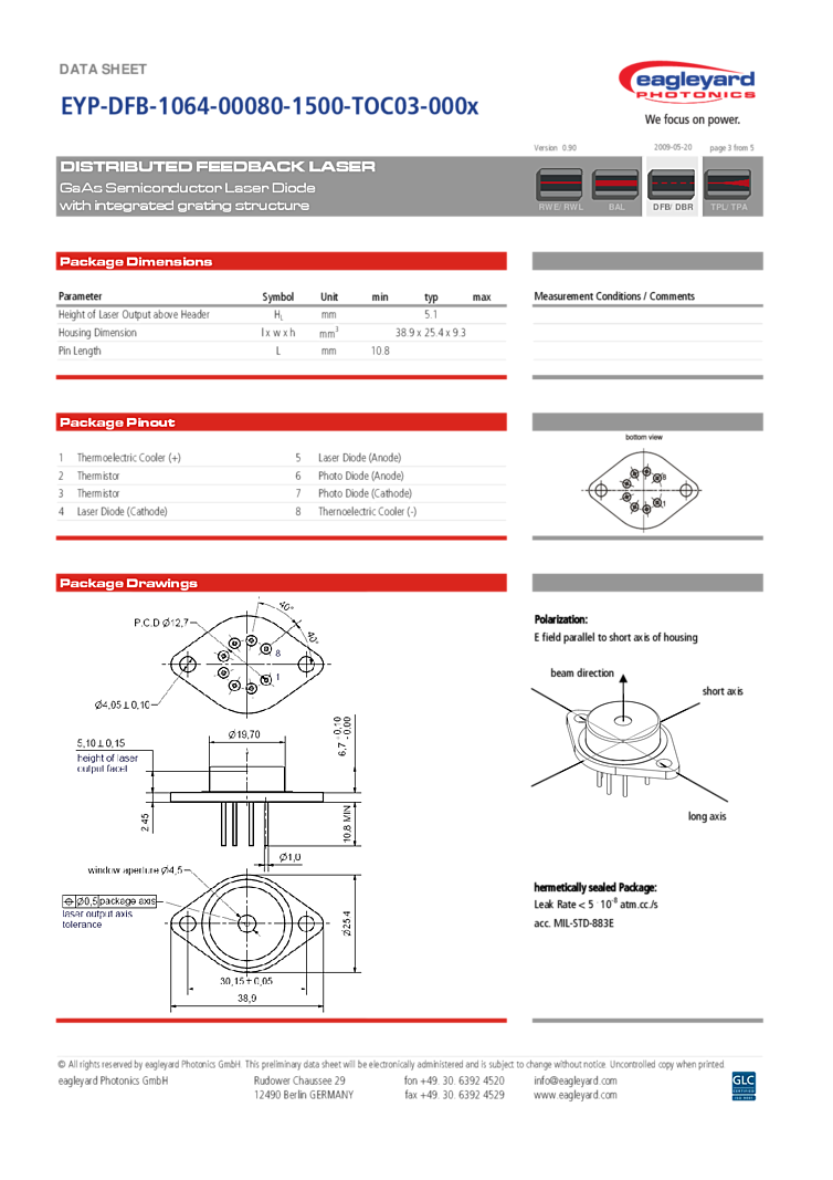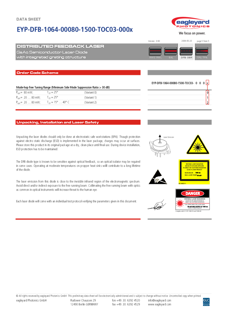 型番: メーカー:eagleyard Photonics GmbH 商品コード:L001495