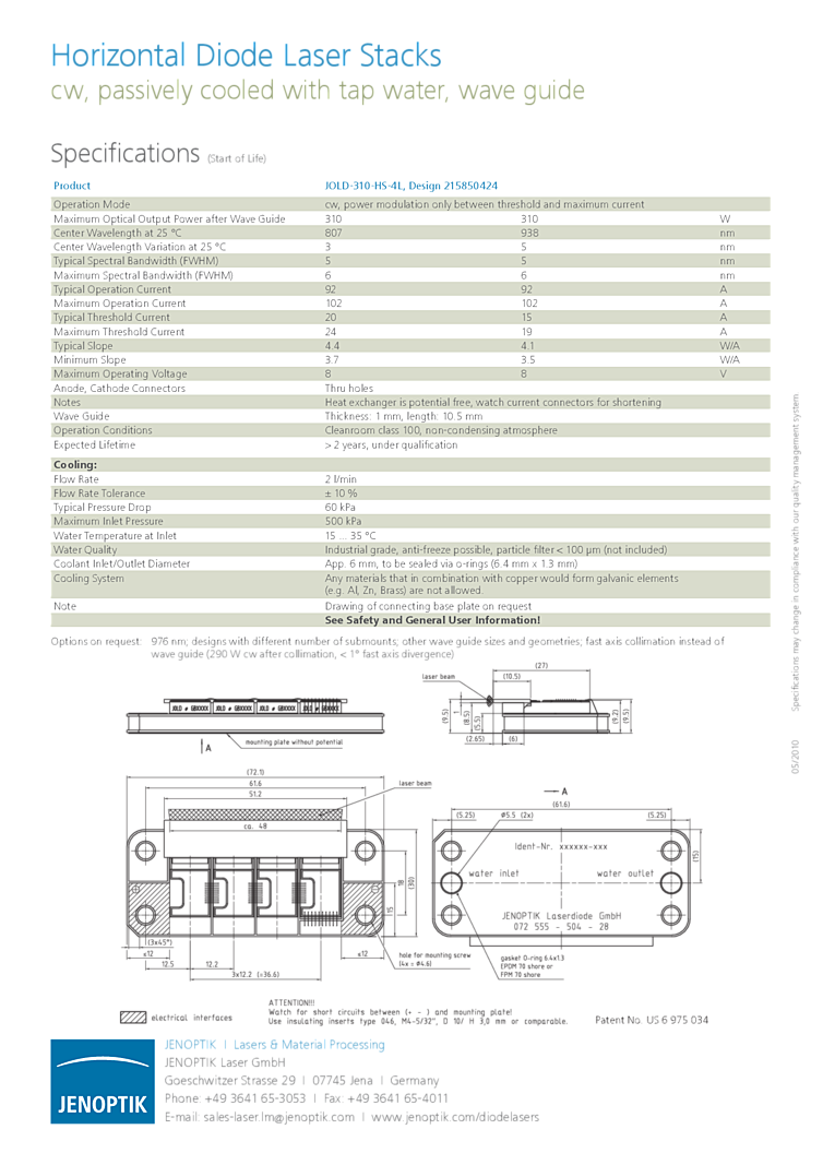 波長: 938nm-938nm 出力: 310W-310W パッケージ: stack テクノロジー: high power laser stack