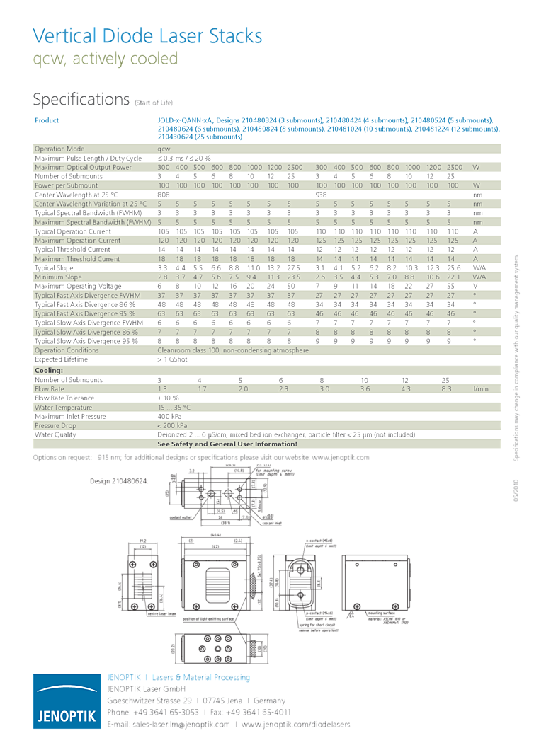 波長: 938nm-938nm 出力: 2500W-2500W パッケージ: stack テクノロジー: QCW high power laser stack