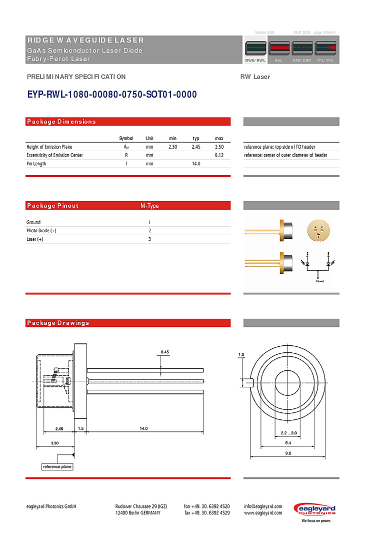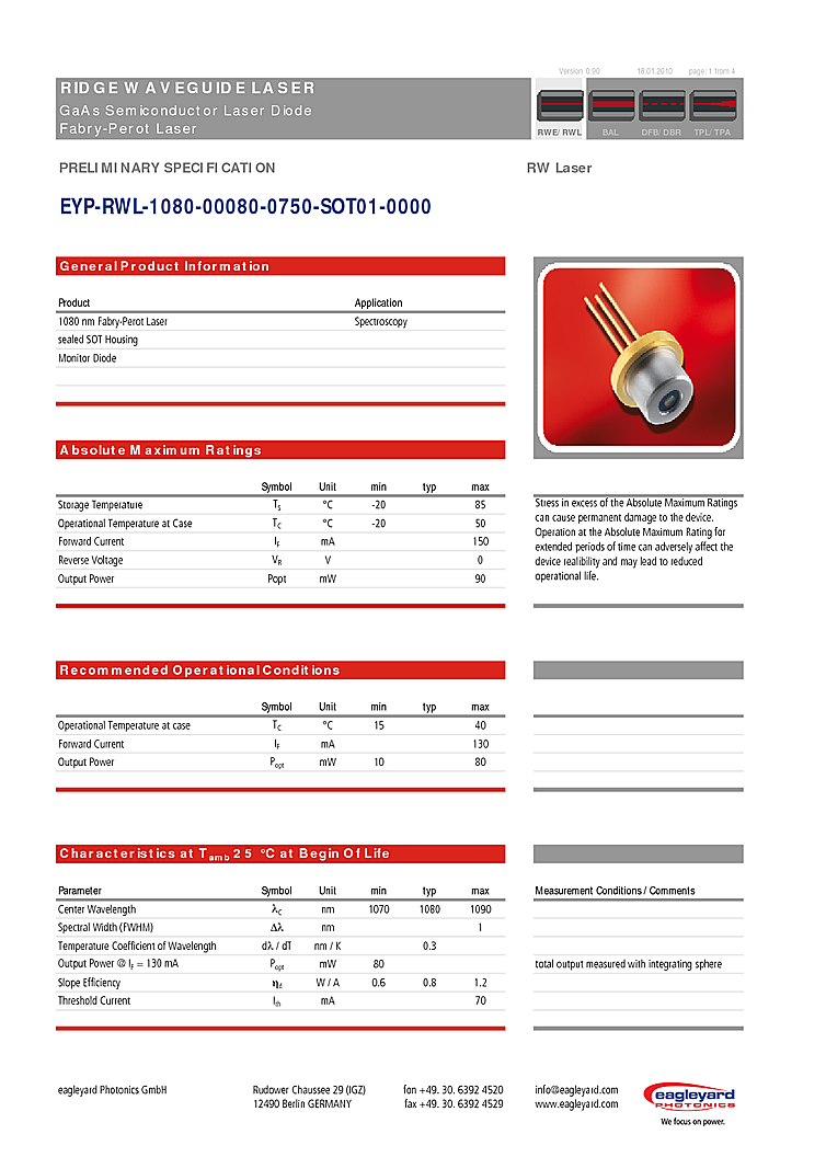 型番: メーカー:eagleyard Photonics GmbH 商品コード:L001561
