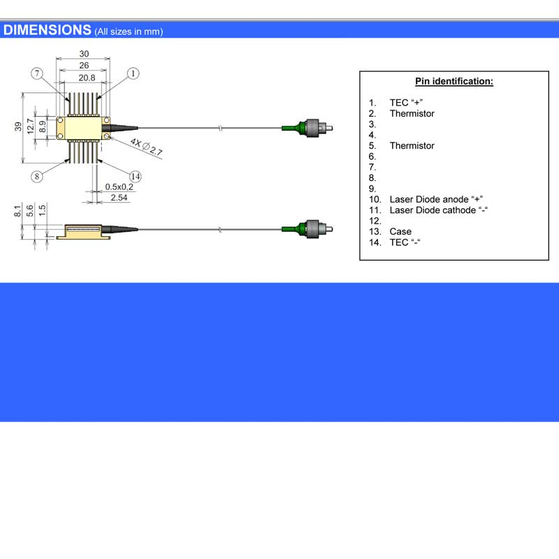 This diode laser series offers wavelengths from 1030nm-1090nm is available. A proprietary mirror coating technology enables long life-time and high reliability performance. A PM fiber is available and these devices are RoHS compliant. They are offered in multiple packaging options, including butterfly with integrated TEC cooler and optional photodiode. Customers can choose between PM980 or HI1060 fiber with a standard FC/APC connector. For other packing or fiber pigtail options, please contact us for more information.