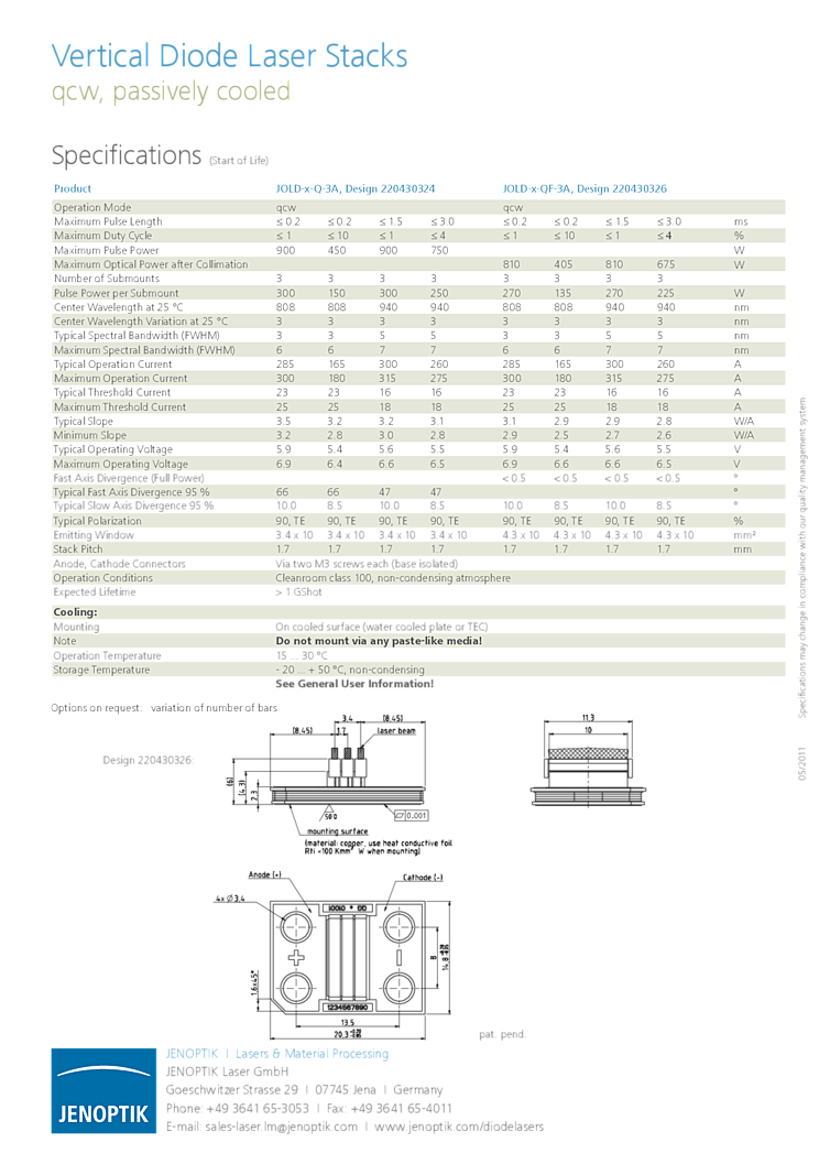 波長: 940nm-940nm 出力: 900W-900W パッケージ: stack テクノロジー: QCW vertical stack