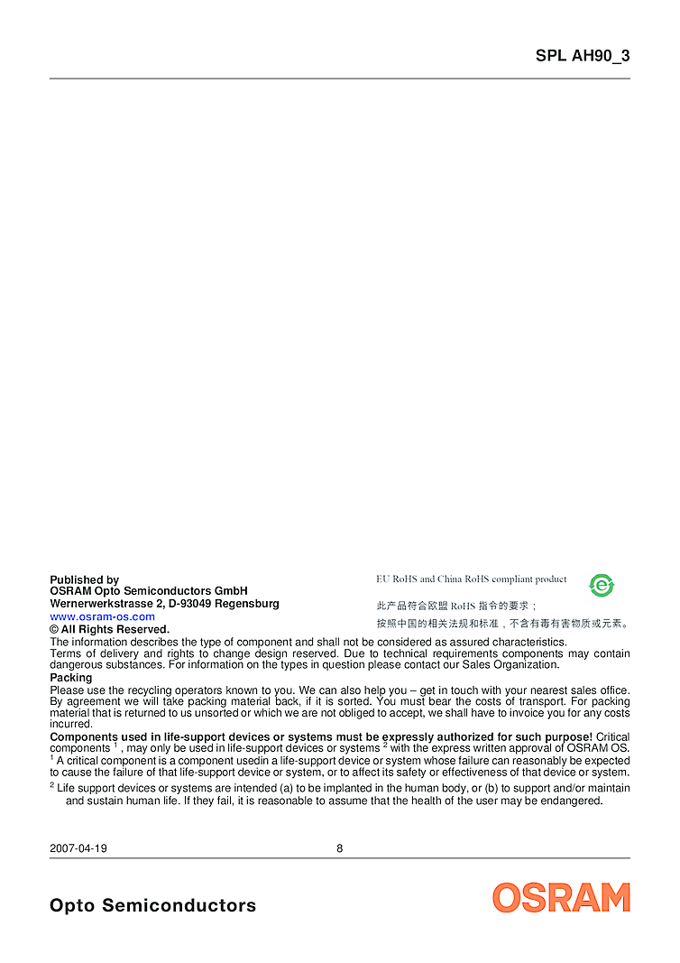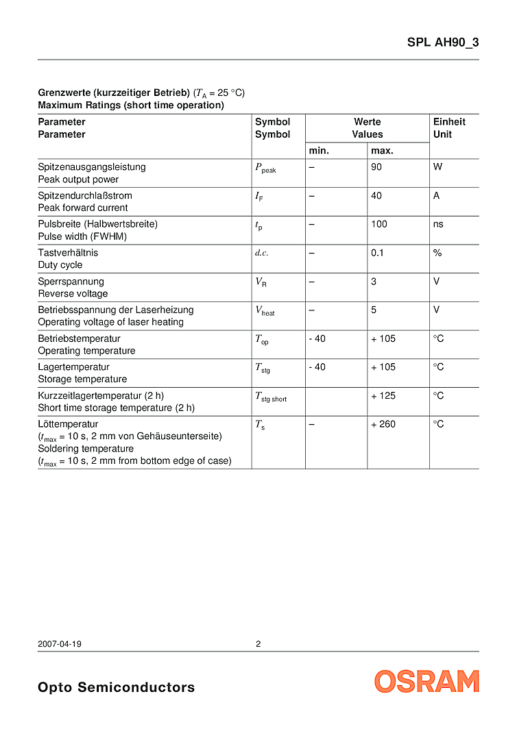 型番: メーカー:OSRAM GmbH 商品コード:L001590