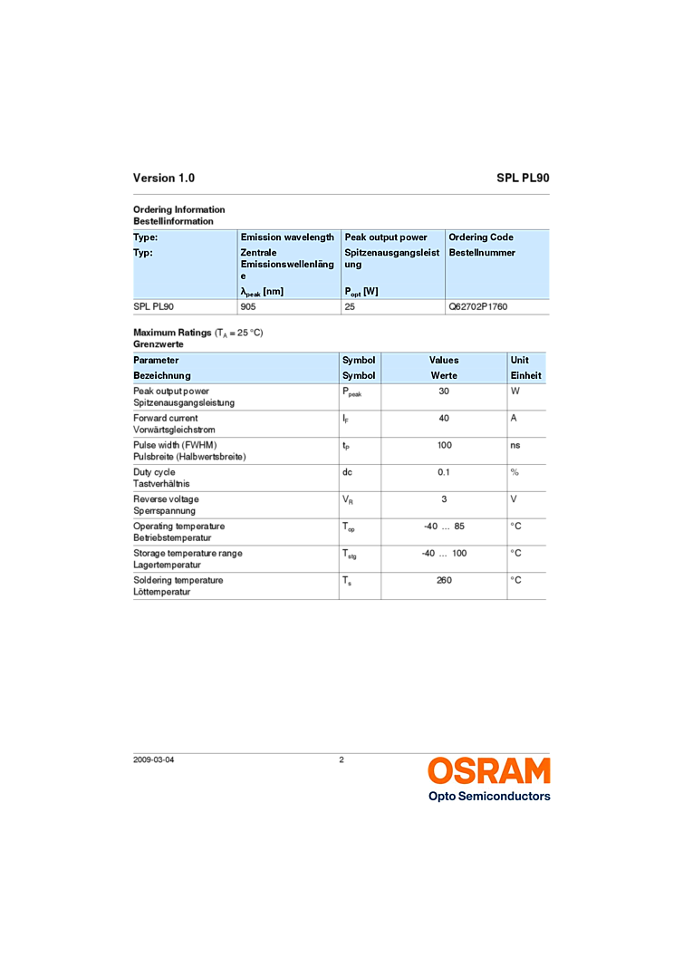 • Laser wavelength 905 nm