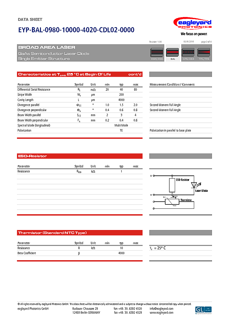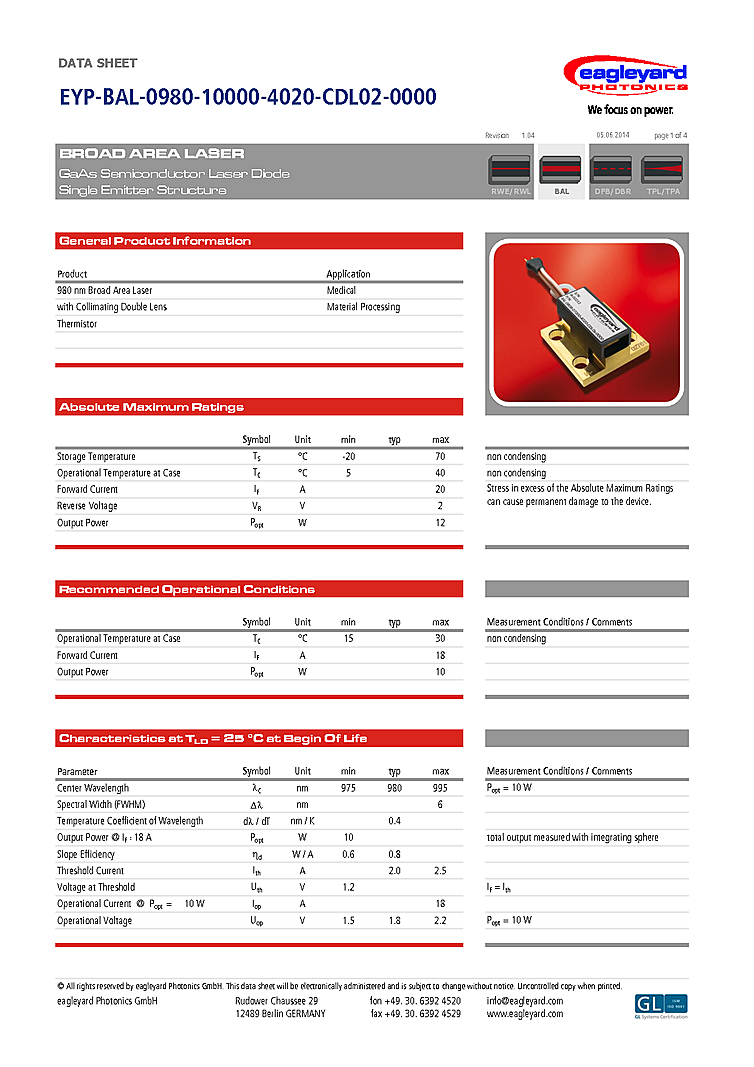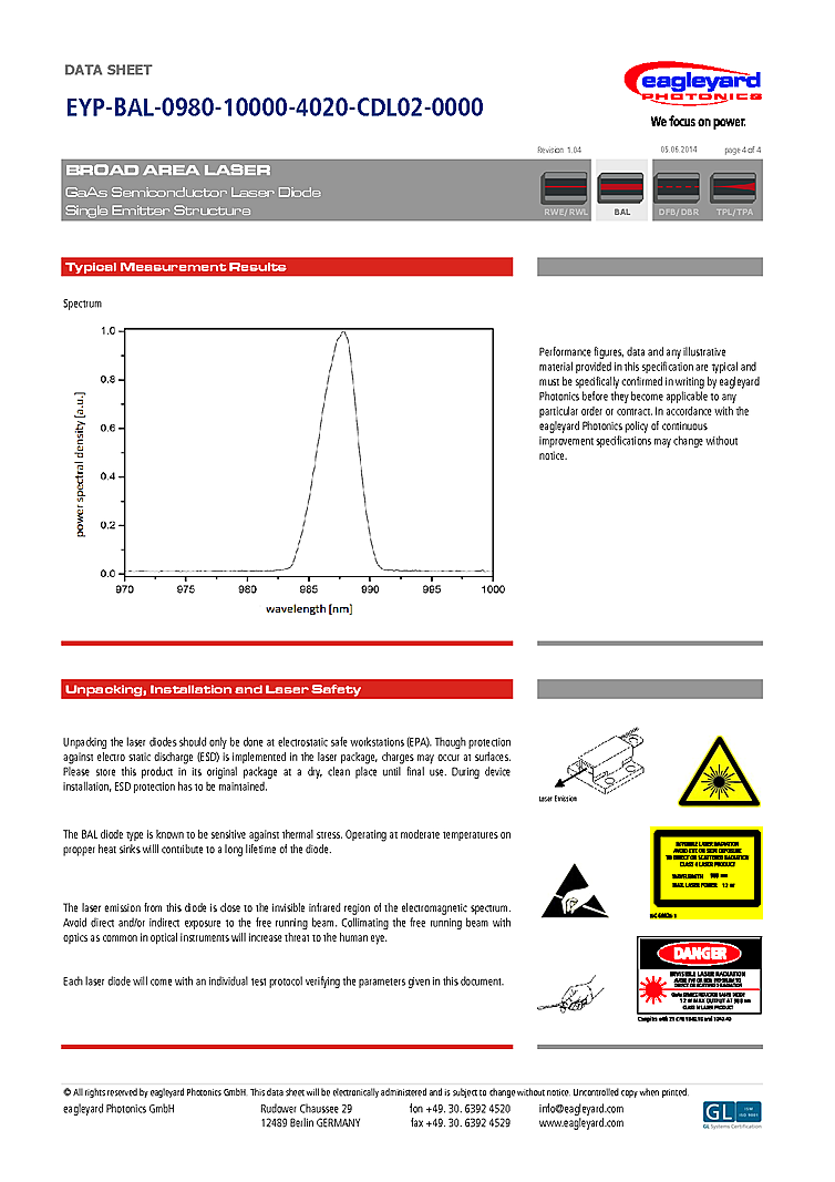 型番: メーカー:eagleyard Photonics GmbH 商品コード:L001640