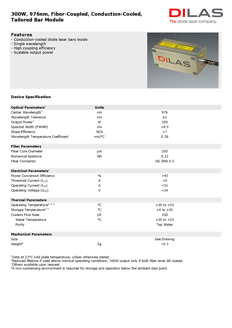 波長: 976nm-976nm 出力: 300W-300W パッケージ: fiber coupled module テクノロジー: high power array