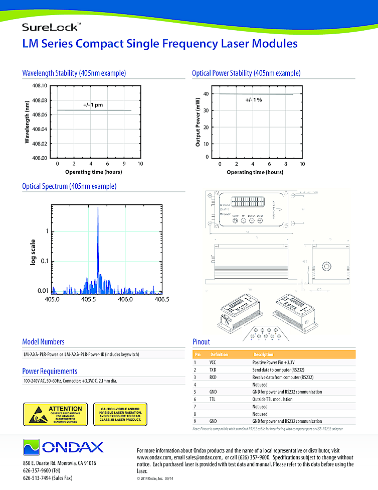 For more information about Ondax products and the name of a local representative or distributor, visit www.ondax.com, email sales@ondax.com, or call (626) 357-9600.
