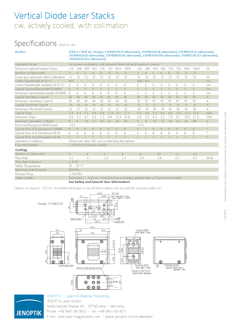 976nm 2500W stack high power vertical stack