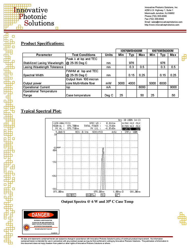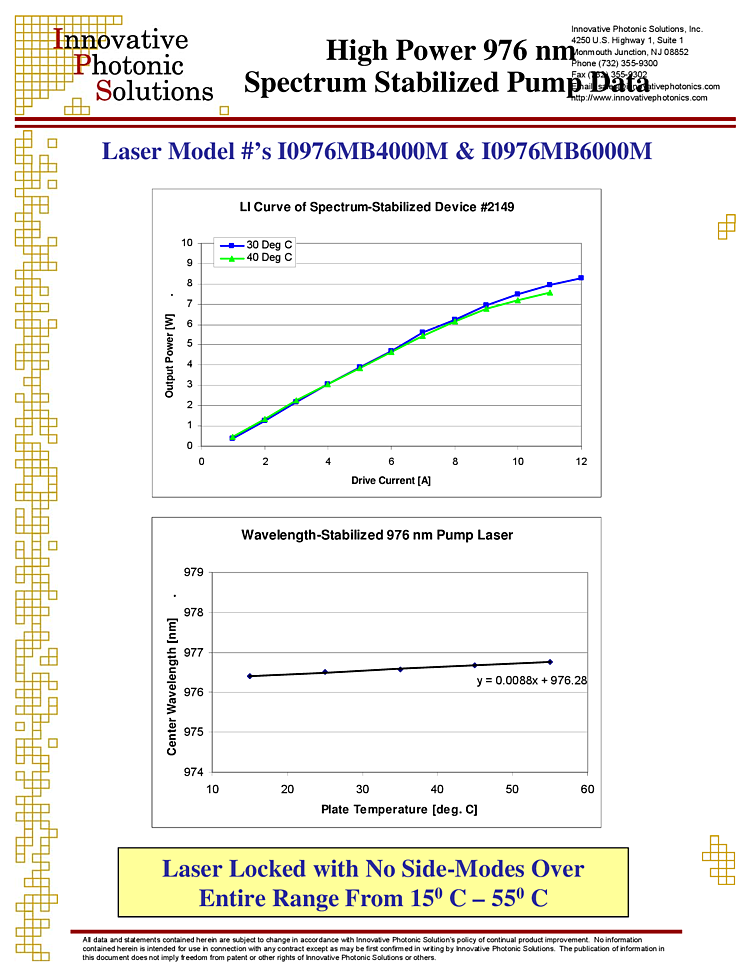 Innovative Photonic Solution’s proprietary Multi-Mode Spectrum Stabilized Laser features high output power with narrow spectral bandwidth that “locks” the spectrum so that all of the pump’s power remains within the absorption band. This dramatically reduces total system costs because it eliminates the need to “bin” lasers while enabling more efficient pumping - reducing the number of pumps required to achieve the desired output power level. But the