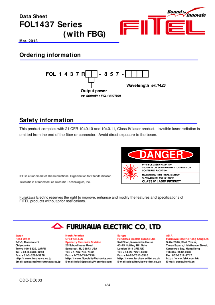 波長: 1420nm-1500nm 出力: 500mW-500mW パッケージ: butterfly テクノロジー: grating stabilized