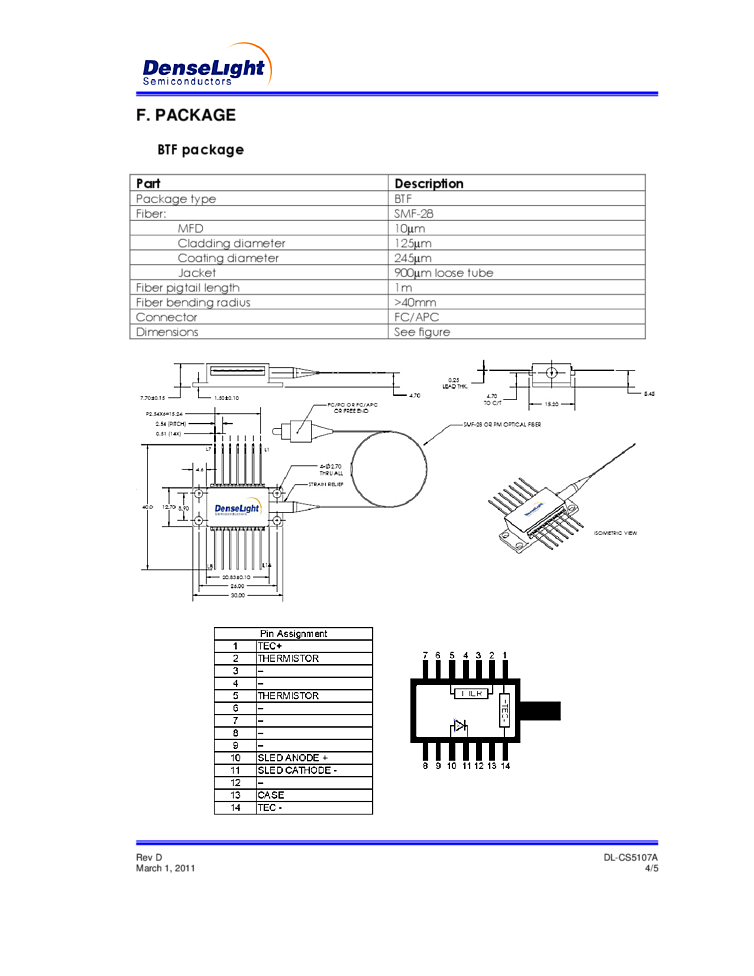 商品コード: L001789 1310nm-1690nm 140mW TO-can DFB Laser and DBR Laser
