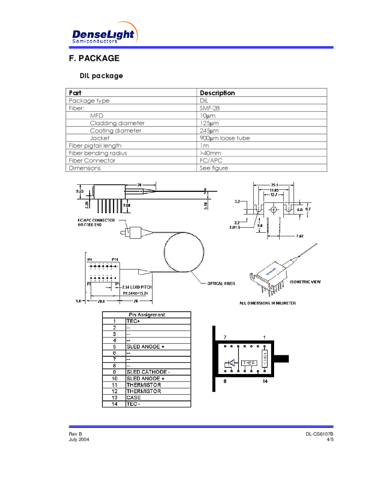 1600nm laser diode offers a typical ex-fiber optical output power of 10mW. Also, typical 3dB bandwidth of 60nm and a typical spectral modulation of 0.15 dB. These SLD semiconductor diode lasers are offered in 14-pin DIL package and are specified with single mode fiber.