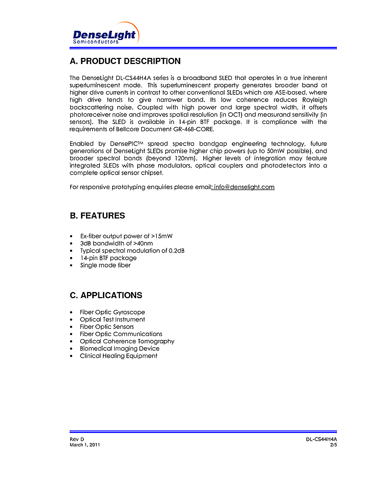 波長: 1440nm-1440nm 出力: 15mW-15mW パッケージ: butterfly テクノロジー: SLED