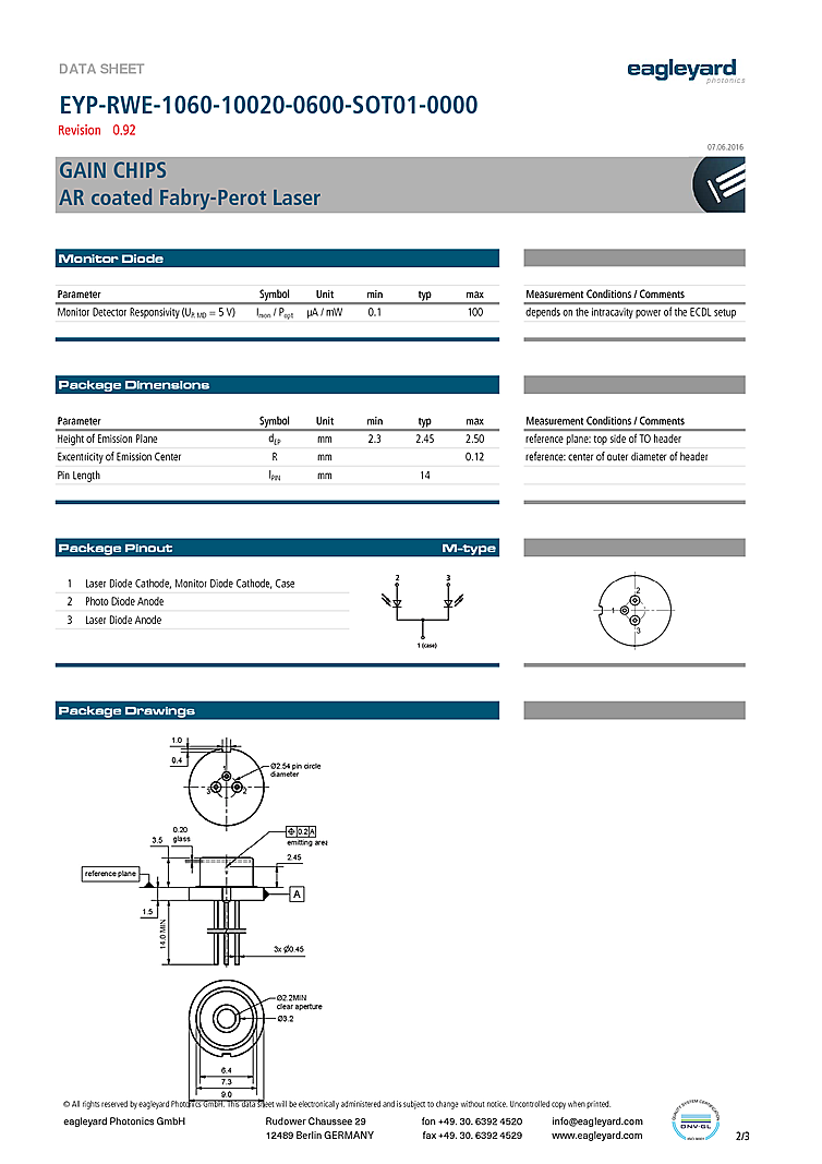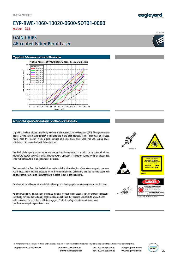 型番: メーカー:eagleyard Photonics GmbH 商品コード:L001955