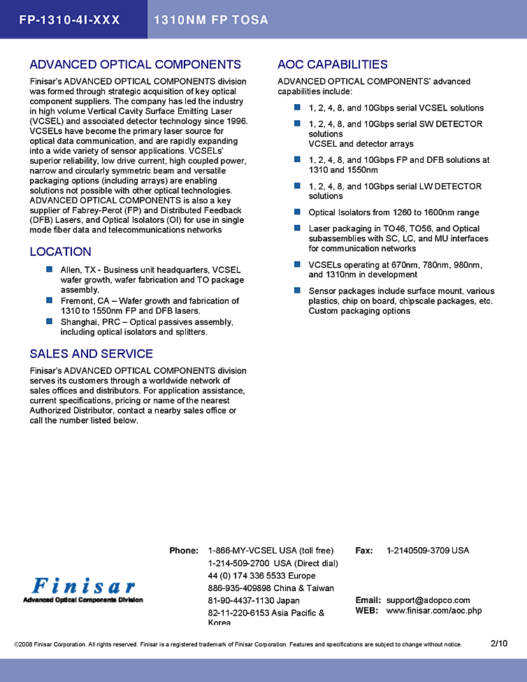 型番: メーカー:Finisar Corporation 商品コード:L001956