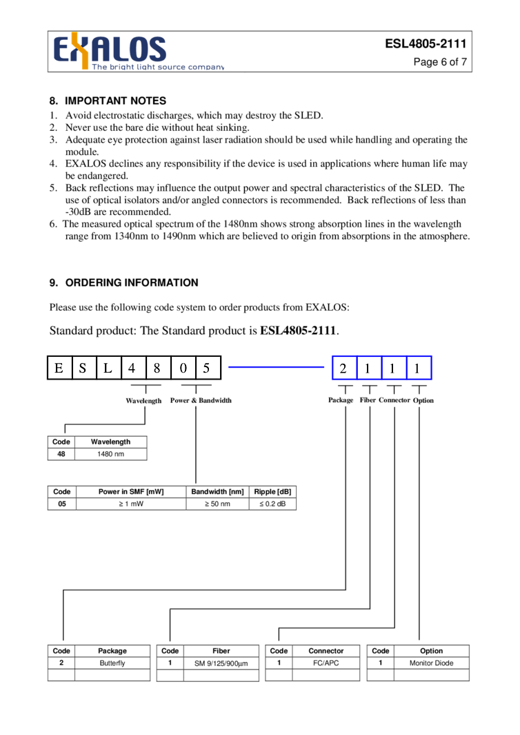 型番: メーカー:EXALOS AG 商品コード:L001976
