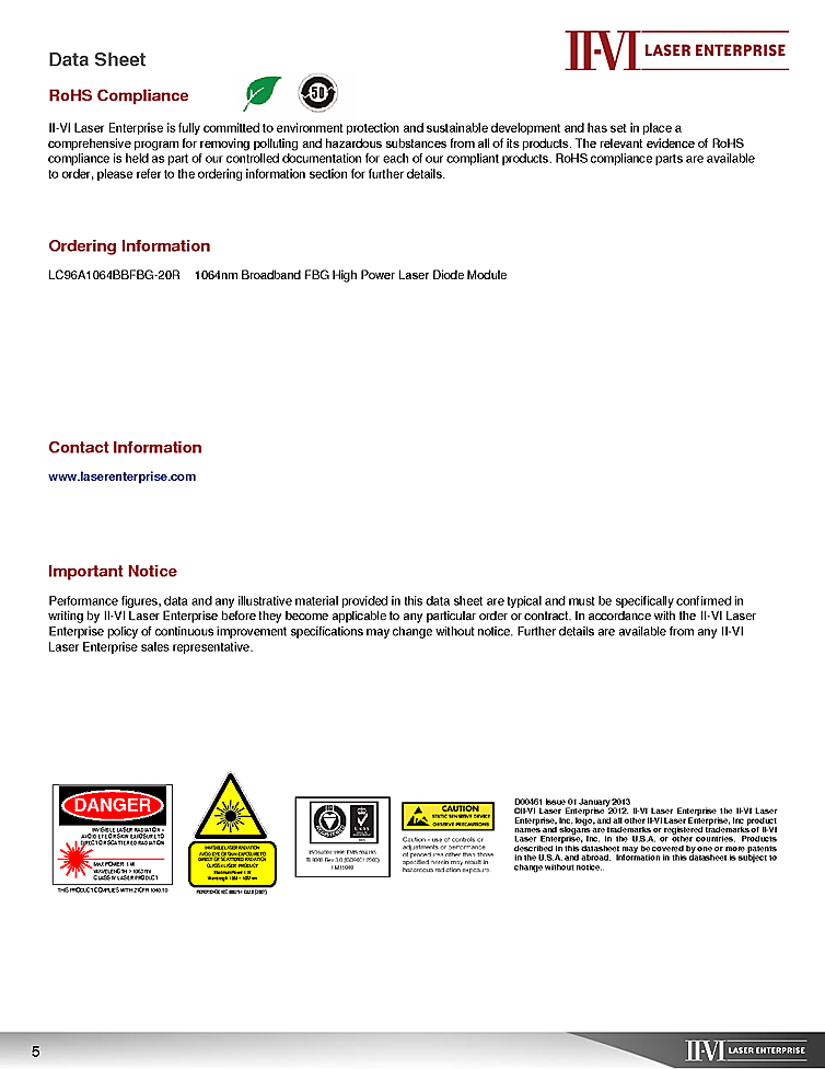 These II-VI Laser Enterprise wavelength stabilized high power single mode laser modules are offered by World Start Tech, an authorized distributor for II-VI.