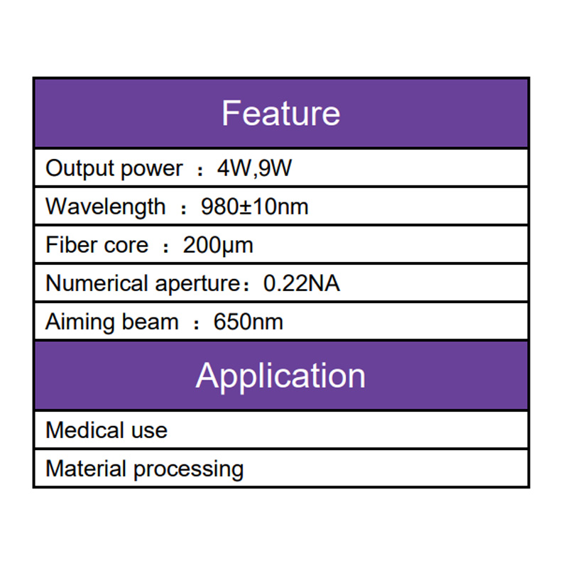 The 980nm 10W Laser Diode is a single emitter fiber coupled module that provide continuous output power from fiber pigtailed, 11-pin high-heat-load module. It is mainly used in the area of fiber laser pumping, medical and material processing and other applications.
