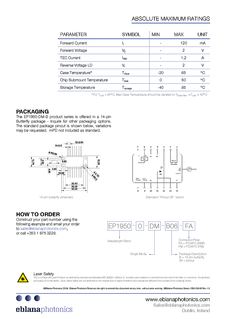 型番: メーカー:Eblana Photonics Ltd. 商品コード:L002045