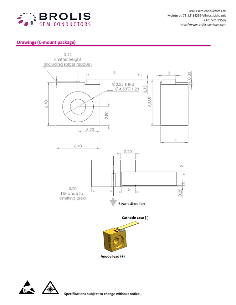 波長: 2300nm-2300nm 出力: 500mW-500mW パッケージ: c-mount テクノロジー: Fabry-Perot
