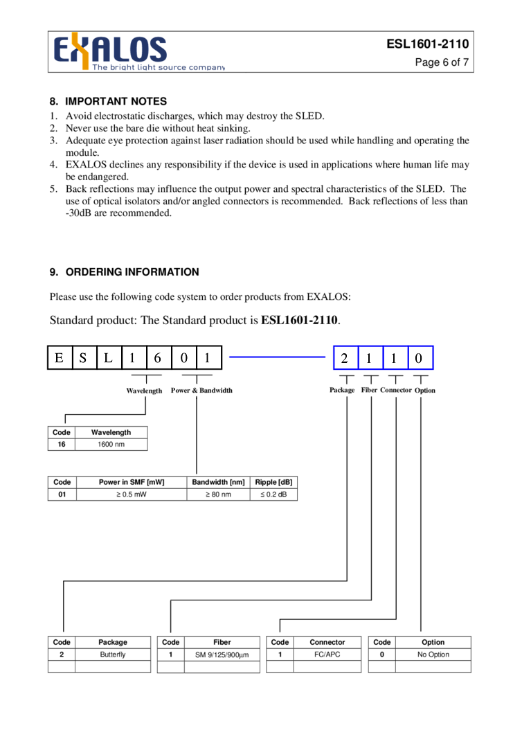 型番: メーカー:EXALOS AG 商品コード:L002136
