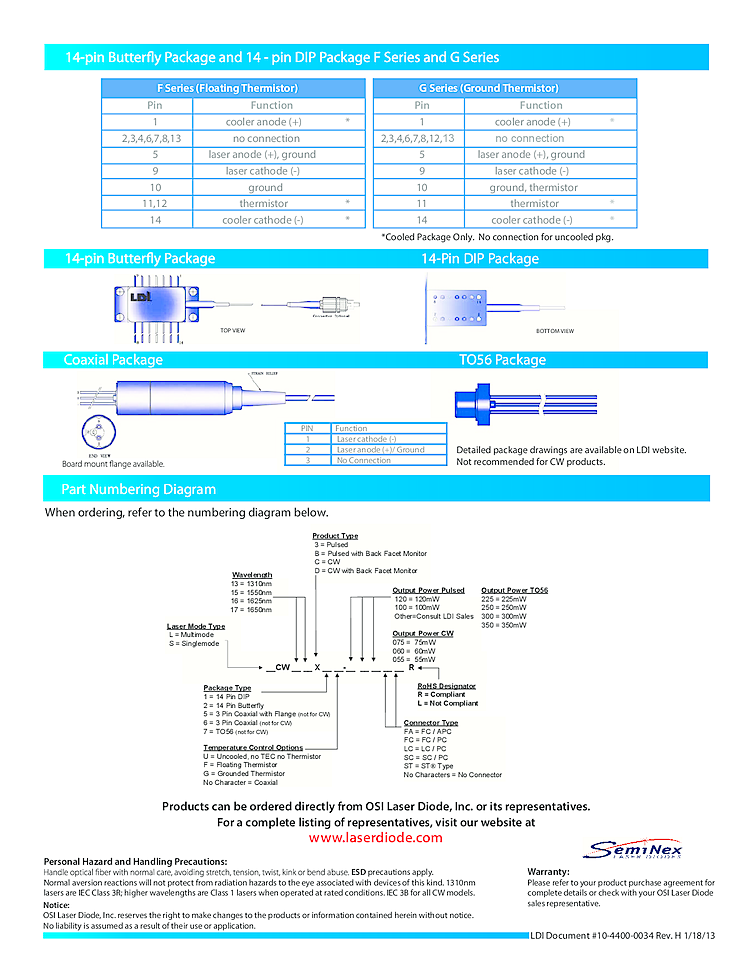 1650nm 200mW DIL, butterfly, TO-can, coaxial n/a