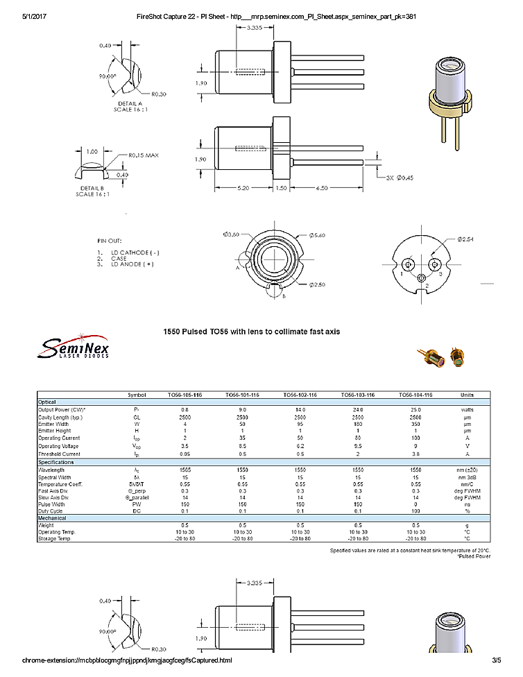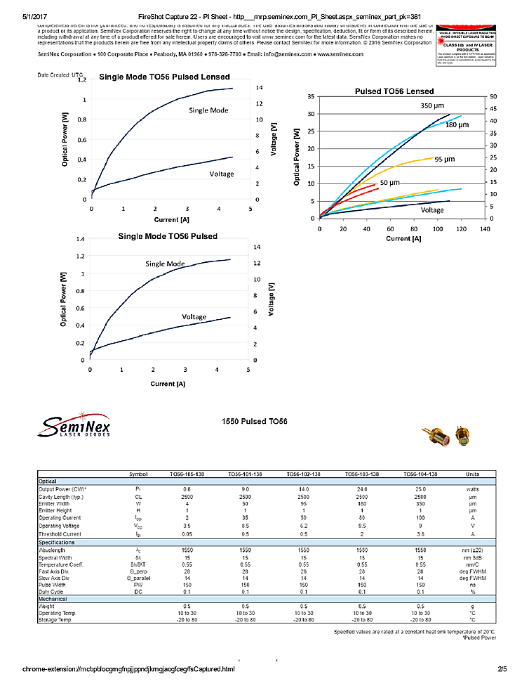 波長: 1550nm-1550nm 出力: 35W-35W パッケージ: TO-can, pulsed テクノロジー: Pulsed, High Power