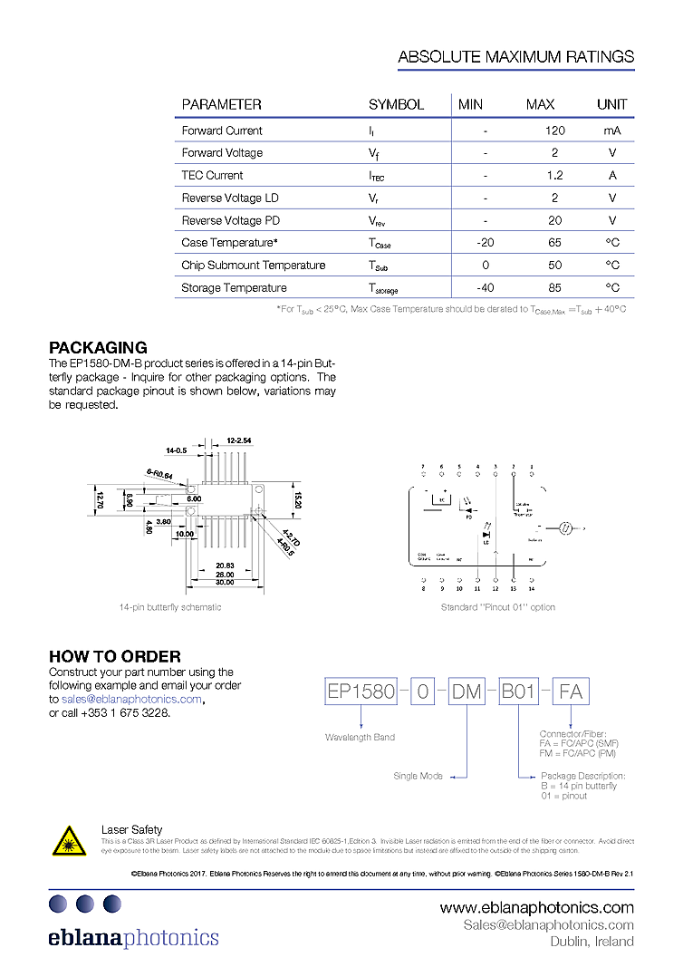 型番: メーカー:Eblana Photonics Ltd. 商品コード:L002291
