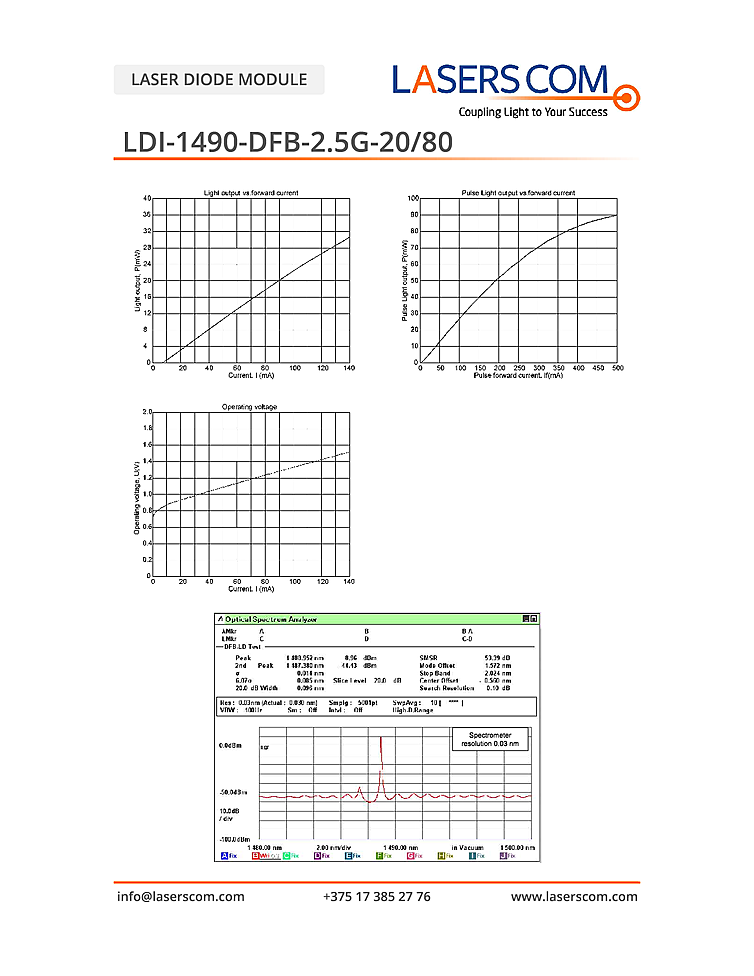 波長: 1490nm-1490nm 出力: 20mW-20mW パッケージ: TO-Can / DIL テクノロジー: DFB