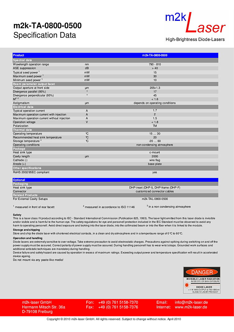 型番: メーカー:m2k-laser GmbH (COHERENT / DILAS) 商品コード:L000239