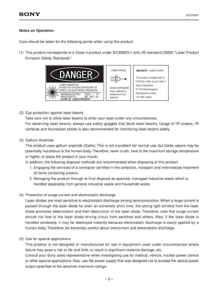 790nm, 840nm The Sony high power laser diode is a 1W designed to have a uniform emission area. It is suitable for the applications of measurement and printing, etc. This high power device offers a 9mm high heat load package that is easy to handle. The structure is Structure is based on an AlGaAs Quantum Well structure.