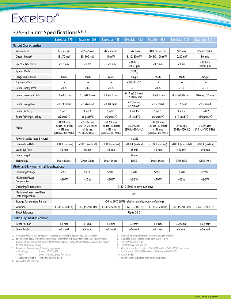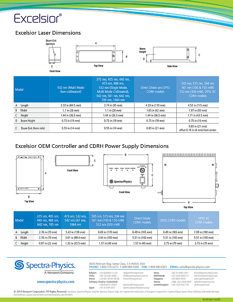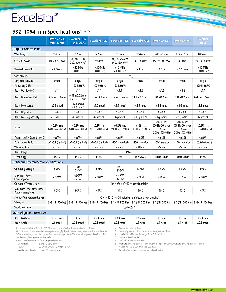 CW laser from Spectra-Physics is designed for applications in Flow cytometry, Confocal microscopy, Micro-array readers, Laser-induced fluorescence, Raman spectroscopy, DNA sequencing, Interferometry and Semiconductor inspection & metrology. For easy integration into customer applications the laser was designed with a small footprint. High-quality TEM00 beam with M2<1.1 and exceptionally low optical noise less then 0.5% over a frequency range of 20Hz to 20MHz. Optional fiber-coupled OEM versions are available for the diode pump solid state laser. CW Laser with 532nm wavelength and output power of 40mW.