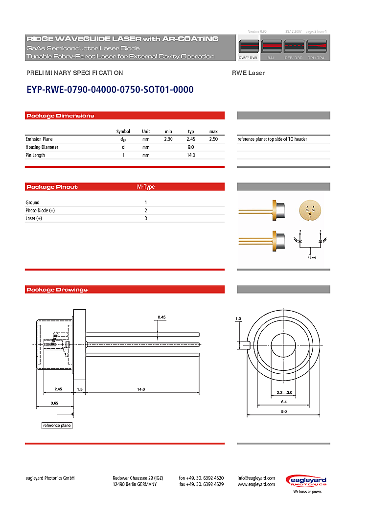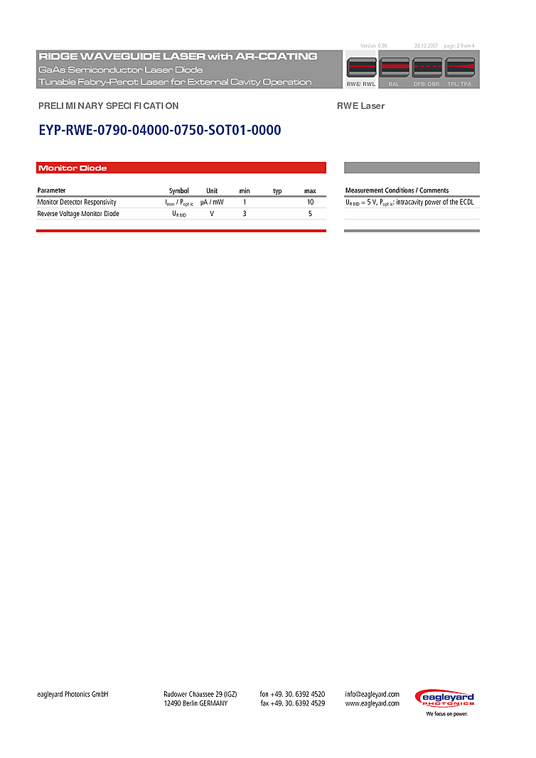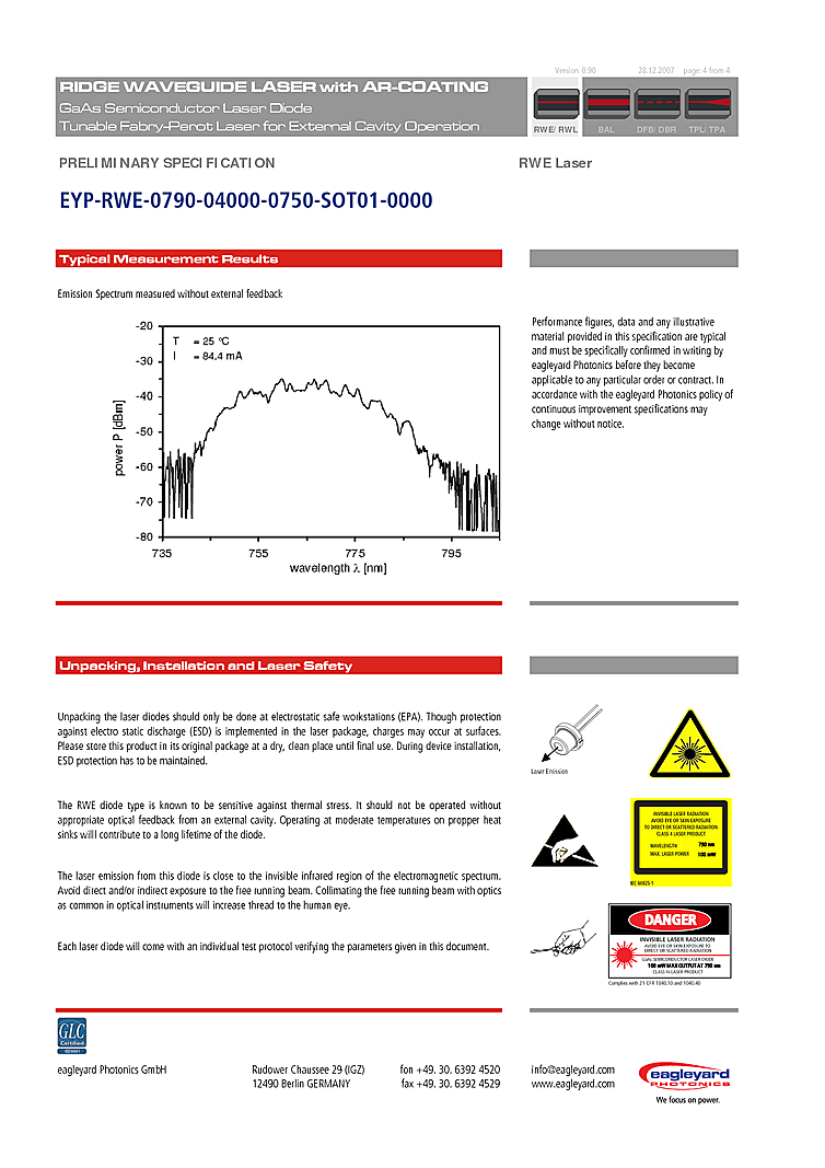 型番: メーカー:eagleyard Photonics GmbH 商品コード:L000256