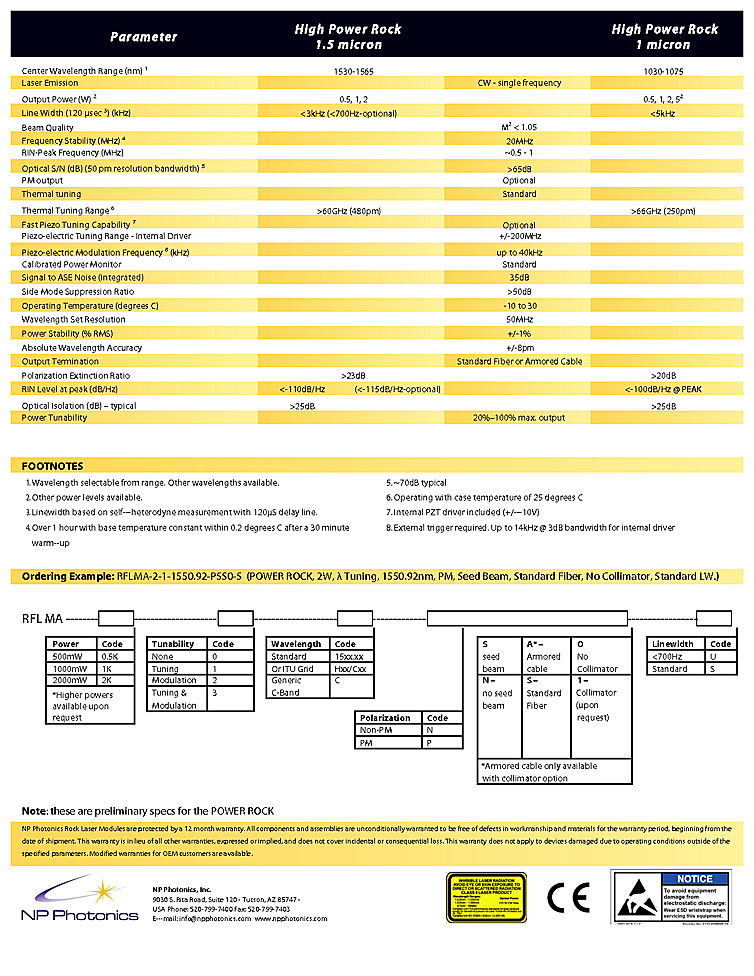 型番: メーカー:NP Photonics, Inc. 商品コード:L002592