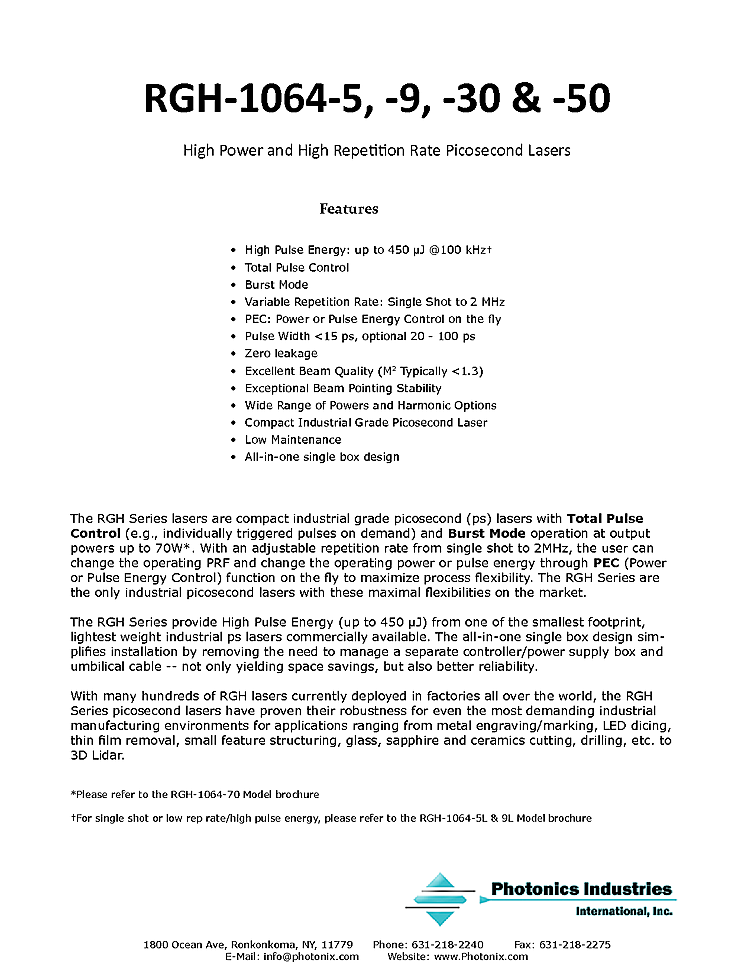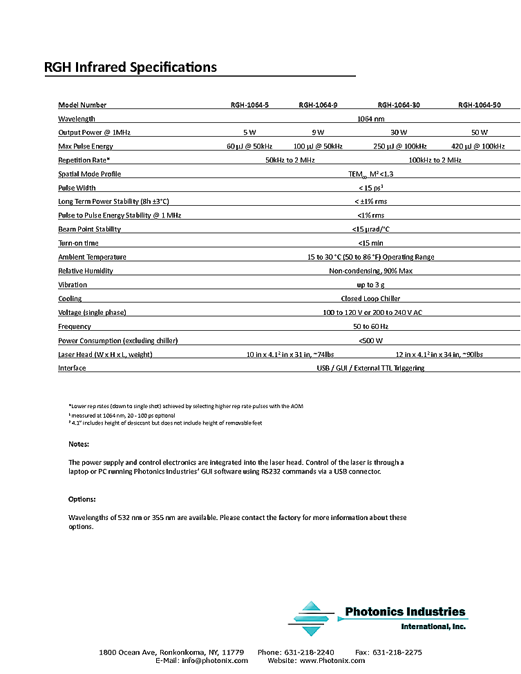 型番: メーカー:Photonics Industries International Inc. 商品コード:L002641