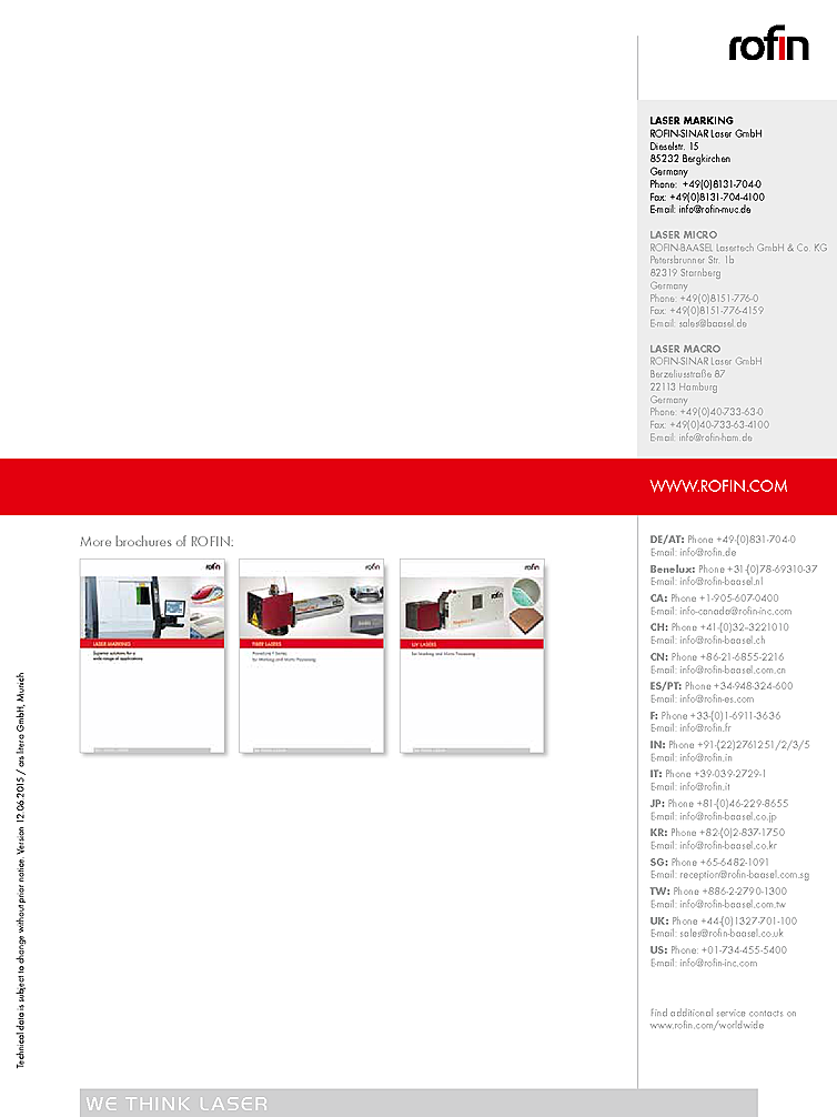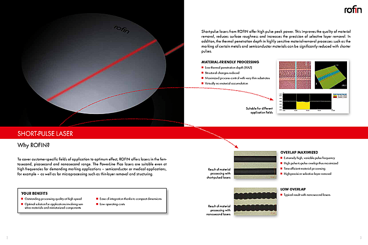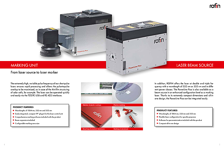 Fiber laser from Rofin was designed for applications in marking, material removal, reducing surface roughness and precision of selective layer removal. Picosecond fiber laser is easily integrated because of a compact 19“ plug-in for the laser control unit and can be integrated with a beam expansion. The fiber laser can be controlled via USB, TC/IP or RS-422 and includes a comprehensive marking software. The laser beam quality is M2<1.6 at TEM00. The pulse repetition interval is 200kHz to 800kHz with a pulse duration of 550ps at 400kHz. Average output power is 8 watts at 400kHz. Fiber laser wavelength is 1064nm with a pulse energy of 20µJ.