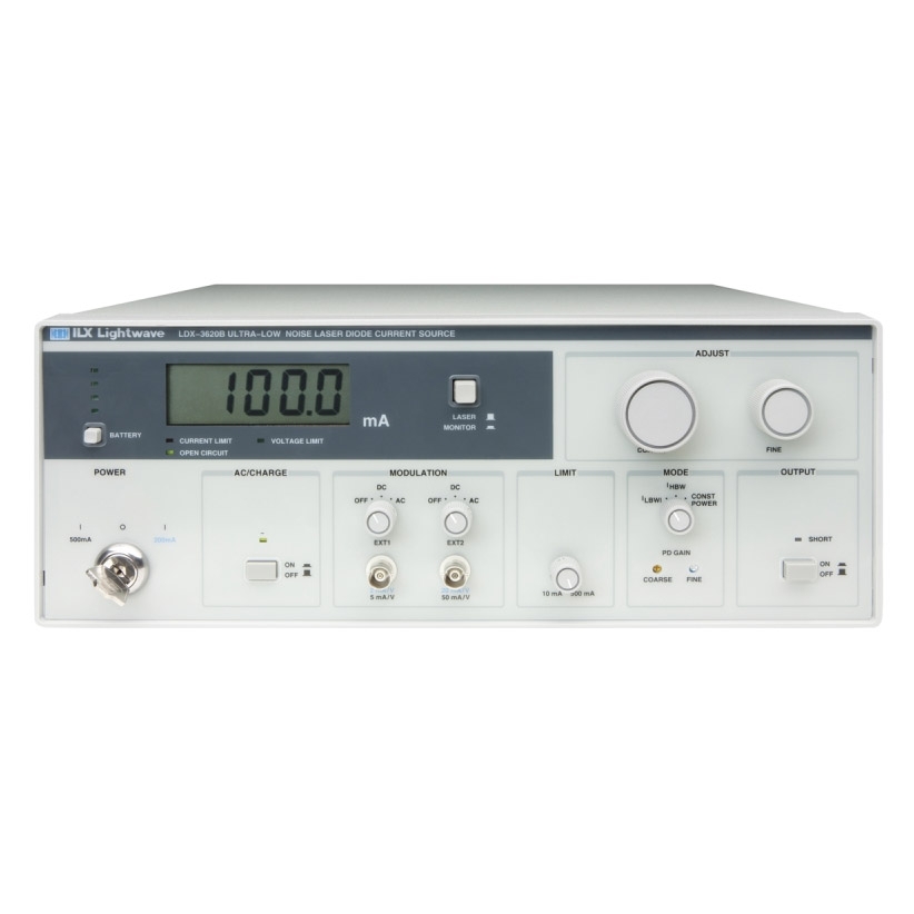 The ILX Lightwave LDX-3620B can be operated at full-scale current in constant current low bandwidth, constant current high bandwidth or constant optical power mode.