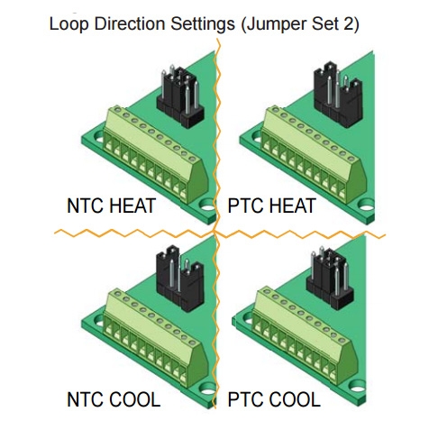 The jumpers can be accessed with the cover removed. The optimal sensor voltage range is 200 mV to (V+ - 2.7 V) with an absolute maximum of 7 V. Maximum Output Current is dependent on the supply voltage and the resistance of the sensor.