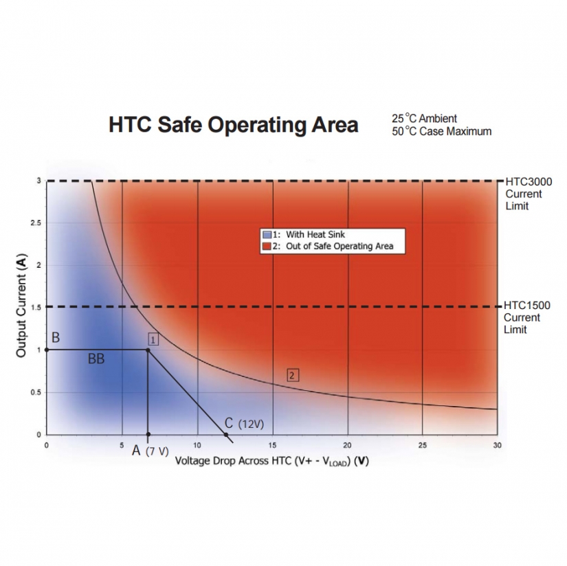 Other features of the HTC series offer added flexibility. The single resistor sets the maximum output current to your load. Add a diode to operate resistive heaters with a unipolar output current. An onboard reference voltage simplifies potentiometer control of the temperature setpoint. You can also choose to operate remotely with an external setpoint voltage.